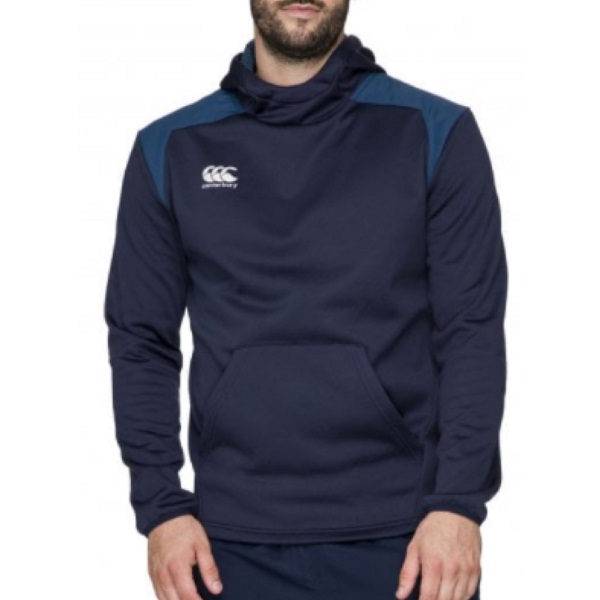 FABRIC: MAIN 100% Polyester Spacer Fleece 283gsm with Vaposhield and Thermoreg technology OVERLAY 100% Polyester 84gsm.FEATURES & BENEFITS: Over head hoody with contrast overlay at shoulder. Lower front kangaroo pockets. Dropped hem with twin needle finish.BRANDING: Canterbury transfix at right chest and Thermoreg transfix at left hem.